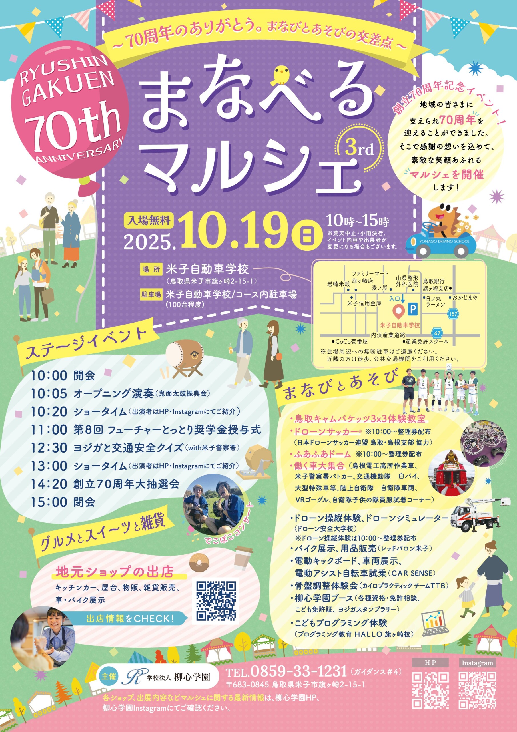 「第3回まなべるマルシェ ~70周年のありがとう。まなびとあそびの交差点~」を開催いたします!